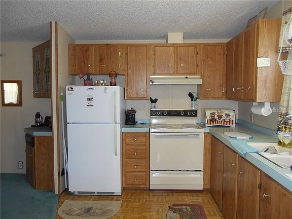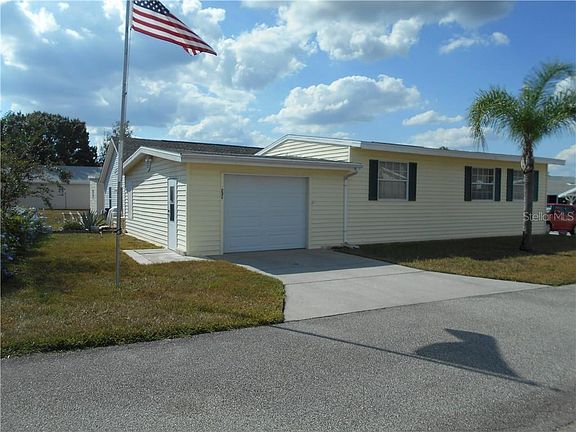 This lovingly maintained ONE OWNER 2 bed/1 bath home is situated on a corner lot (42x84) leading in to a cul-de-sac AND close to the entrance. The corner lot allows for a front entrance on one side and a GARAGE on the other (9' door). The master bedroom has plenty of storage and the 2nd bedroom is currently used as an office. The large dining room and kitchen allows for plenty of room to entertain. This home is being sold furnished as seen with very few exceptions. Bass Lake is conveniently located to Margaritaville, gasoline stations, grocery stores, drug stores, 27, 192, 429, and I-4. This is NOT a 55+ community. The HOA fees are $180/month BUT that pays for your water, sewer, trash, and lawn mowing! (Also known as 231 Lake Trout Court)
