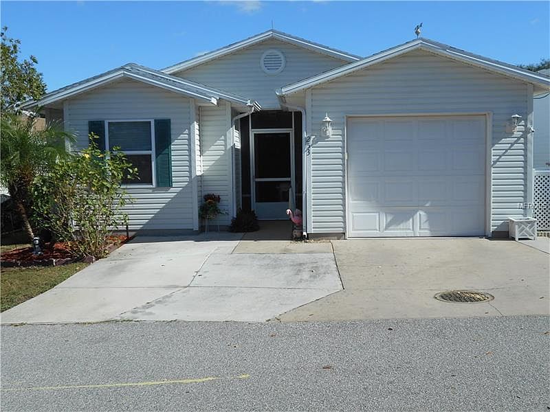 Here's your chance to buy a three-bedroom home in a gated lakefront community with no rear neighbors. Nice open floor plan, ceramic tile throughout most of the home, eating space in the kitchen, separate dining area, split bedroom arrangement, great master bedroom suite, and a nice enclosed rear porch overlooking the patio area. 6 panel doors throughout, overhead pull-down storage in garage, screened entrance, and hurricane windows. New roof in 2006 and A/C in 2013. Bass Lake is a gated community on a 175+/- acre lake with a private dock and boat slips. It features two heated pools, horseshoe pits, shuffleboard courts, billiard room, and card room. The HOA fees include water/sewer/trash/lawn mowing. There is NO LOT RENT as you own the land in this park. (AKA: 253 Lake Trout Court)