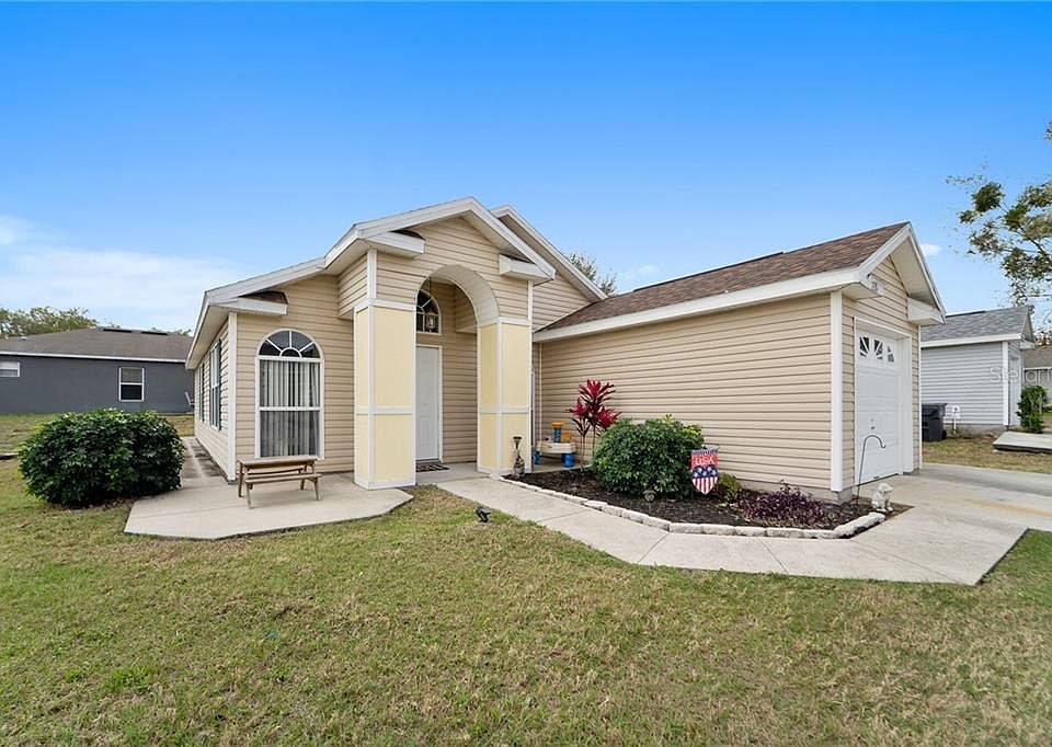 Great location for this well-maintained, 3 bedrooms 2 bathrooms and 1 car garage single family home. Come take a look at this wonderful gated community of BASS LAKE, close to shopping, restaurants, all the Orlando attractions. Perfect home to retire, or just have a second home at. This community features , two pools, hot tub, private community dock and boat launch, club house with exercise room, horseshoe pits, billiards room, and locked private storage for your boat/RV are included with low HOA fees as well as water, sewer, lawn care and trash pickup. Call today to schedule your showing. AC unit replaced in 2018 and the roof in 2017