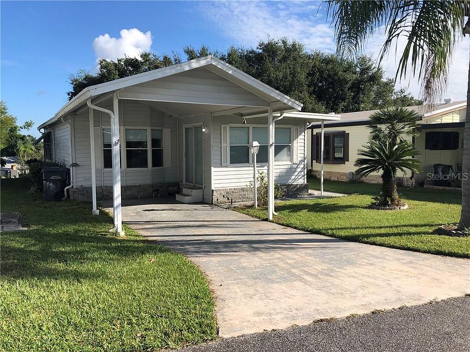 Charming and ready to move-in 2 Bed 2 Bath low maintenance beautiful home conveniently located in the Lakefront Community of Bass Lake. Home features a split plan with generously sized rooms and living/dining room combo. Spacious Master bedroom features a built-in shelving, drawers, and dresser with mirror. Build in cabinets through out. All newer appliances included washer and dryer (2019). Brand new A/C (2020). Very specious enclosed Florida room allows you to enjoy the outside view for family private entertaining. Community has a lot to offer - Gated access, Club House with exercise room, pool table, Monday night Bingo, 2 large swimming pools (one Solar heated), hot tub, fishing pier, private community boat slip to huge Lake Davenport, private boat parking and more! Low HOA included water/sewer/trash/lawn care. Just minutes away from Disney/local theme parks, restaurants, shopping, golf, fire station, a public park, soccer fields and more! This home is designed to be your relaxing getaway.