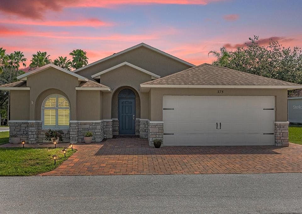 Located in the gated community of Bass Lake, in the sought-after 4 Corners area of Central Florida. This charming 3-bedroom, 2-bathroom home at 50989 Highway 27 #375 in Davenport, FL, offers 1,385 sq ft of well-designed living space. The well-maintained kitchen opens up to the rest of the home, featuring appliances that match the cabinets and countertops, looking out onto an enlarged screened-in lanai through a beautiful bay window. The formal dining room is perfect for hosting gatherings. The master suite offers a tranquil retreat with laminate floors, a sliding door to the screened-in lanai, and a spacious walk-in California closet. The master bathroom is thoughtfully designed with a walk-in shower, dual vanity, and elegant tile flooring. Additional features include an updated AC and air handler (2021), a recently replaced water heater (February 2024), and a roof that’s just 8 years old. Situated on a desirable corner lot with brick pavers in the driveway and slate rock a quarter way up the front of the home; this home combines modern comfort with timeless appeal.