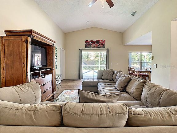 - Interior Features: Ceiling Fans(s), Eating Space In Kitchen, Open Floorplan, Thermostat, Kitchen/Family Room Combo, Living Room/Dining Room Combo, Window Treatments, Vaulted Ceiling(s)