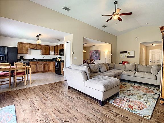 - Ceiling Fans(s), Eating Space In Kitchen, Open Floorplan, Thermostat, Kitchen/Family Room Combo, Living Room/Dining Room Combo, Window Treatments, Vaulted Ceiling(s)