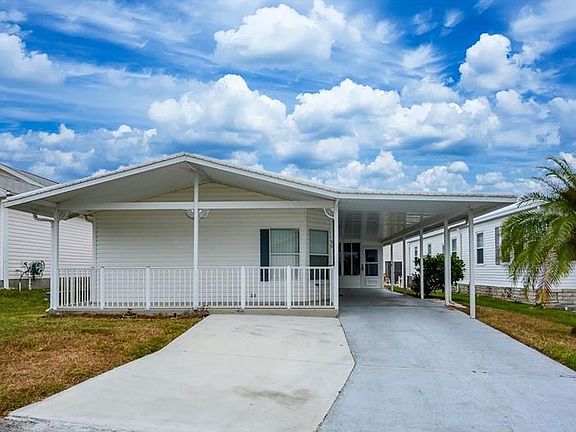 Cozy two-bedroom home nestled in the ALL-AGE community of Bass Lakes in Davenport. Convenient to shopping, restaurants, Walt Disney World, and I-4, this community also boasts access to Old Lake Davenport. Enjoy breakfast on your front porch; enjoy the sunny weather at the large community pool (or cool weather in the community hot tub); enjoy the events at the large recreation center; and relax with friends playing games or watching TV in your expansive Florida Room. The possibilities are endless in this home! Although this is a manufactured home, in this community you own the land- there is NO LOT RENT! The home received a NEW A/C system as well as a NEW ROOF in the past year! Although the home is listed as having less than 1,000 square feet, when you add in the Florida Room, it is much greater than that! If you are looking for a serene place to relax, the community has a large natural area adjacent to Old Lake Davenport with picnic tables nestled under towering pine trees. Enjoy fishing? The neighborhood is called Bass Lakes for a reason! There is a fishing pier as well as a private boat ramp right in the community! If you have a camper or boat, there is a storage area available as well! This home needs to be seen to be appreciated; schedule your showing today!
