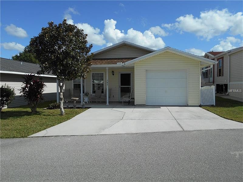 Exceptionally nice 3-bed, 2-bath, 1-car garage single family "hurricane" home located in a very affordable gated community. According to one of the first owners in this park, this home is a site built stucco home with rebar walls and Styrofoam under the siding. This is a solid home with low utility bills. It has been beautifully updated and maintained by snowbirds. The cute front porch says "come and sit for a spell". As you enter the home, you will be amazed at how clean and open it is. Updates include double paned windows, newer refrigerator, deep sink, faucet, countertops...you name it...it's been updated. The three bedrooms are all spacious with plenty of storage. Bass Lake is convenient to shopping and restaurants, and offers access to Lake Davenport. Besides the two swimming pools, there is a picnic area down by the lake, a private boat ramp, and a fishing pier. You own the land. NO LOT RENT! Your monthly HOA fee pays for water, sewer, trash, and lawn mowing. Come take a look. This affordable living community is hard to beat! (Furnishings negotiable). (aka 247 Lake Trout Court).