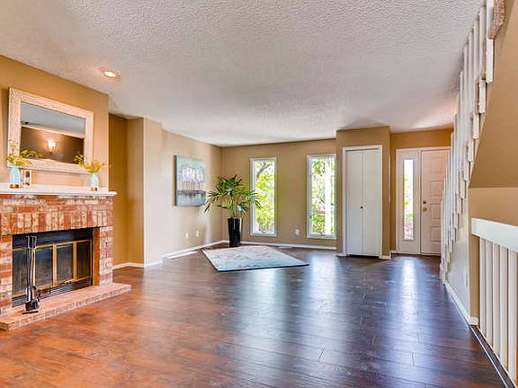 *Open House Sunday, June 4, 1-3* Location, Location, Location! This newly updated townhome located just steps away from Jack B Tomlinson Park in Arvada is a must see! You'll walk in to find new engineered flooring & trendy paint colors throughout the main level. A wood burning brick fireplace is in the center of this open floor plan. With granite countertops, stainless appliances, white cabinets & glass decorative cabinetry above, this kitchen is one of a kind. Upstairs, you?ll notice brand new carpet & fresh paint throughout. The 2nd bedroom adjoins an updated bathroom that also opens out into the hallway. A private deck off this room is the icing on the cake. The master bedroom boasts views of the pond, walking path & gazebo also w/ it's own wood deck leading from the room. The master bath has a garden tub, dual sinks & upgraded tile flooring. Also upstairs, are 2 large hall closets perfect for storage. Don't miss the mud room & huge laundry room located on the bottom level Hurry