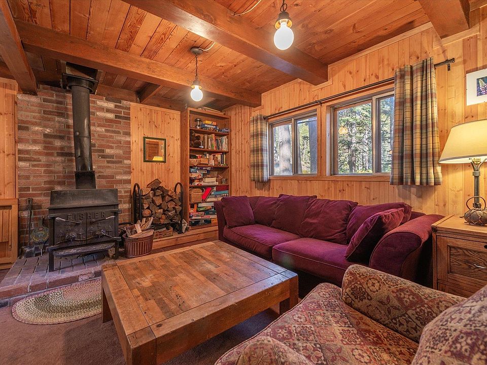 Welcome to your four-season Donner Summit retreat nestled in the heart of the Sierra! Located in year-round, snowmobile-friendly community of PlaVada, this cozy cabin, tucked back on the property for privacy, is the perfect mountain getaway. With three bedrooms plus a sleeping loft, this cabin can comfortably accommodate everyone. Whether you're an outdoor enthusiast or simply seeking a serene escape to nature, this cabin offers an unforgettable experience. In Winter, with direct access to snowmobile trails and a short drive to Boreal, Royal Gorge, Sugar Bowl/Woodward, and Donner Ski Ranch, adventure is right outside your door. In Summer, enjoy all of the backcountry activities Donner Summit has to offer. Climbing, hiking, biking, fishing, it's all right here! Backing to open space means easy trail access in Summer or Winter. This rustic, older cabin exudes charm and character. The wooden interior, vaulted wood ceilings, exposed beams, and wood-burning stove create a warm and inviting atmosphere to cozy up after a day on the slopes. Close to I-80 at the Kingvale exit with easy freeway access + numerous ski resorts just minutes away. Detachable deck railings for easy winter upkeep when roof sheds snow, this cabin has been thoughtfully kept. There is room to build a new ADU over garage closer to road and could be attached or detached, but cannot be short term rented per California ordinances. Owner is required to obtain Transient Occupancy Tax Certificate from Nevada County if they are going to do Short Term Rentals. PlaVada HOA also requires STR registration of $200 annually. Furnishings and firewood included make this a turn-key opportunity to own on Donner Summit today. Private PlaVada HOA provides street snow removal, water and sewer, plus a members-only private beach and swimming hole on the South Yuba River. Annual PlaVada cabin dues currently $2,670. Caution: BEAR-I-CADE system in use.