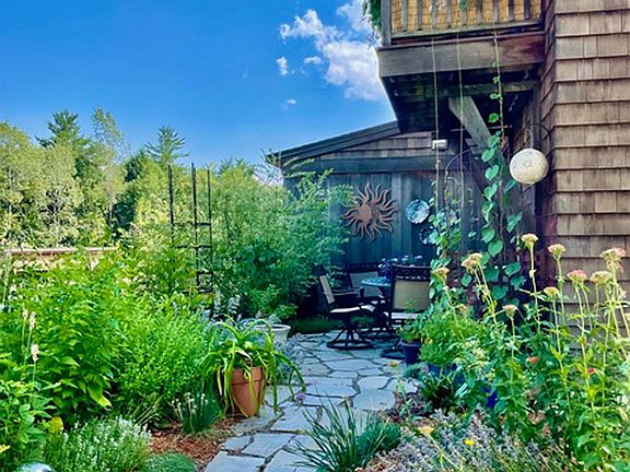With loneliness at epidemic proportions, does the opportunity to live in a welcoming and secure village of neighbors of all ages sound appealing? Are stewardship of the environment and energy efficiency important to you? Do outdoor pursuits - hiking, swimming, cross-country skiing, skating - on 113 acres of field and forest figure on your wish list? Do you like to garden? Would you enjoy caring for chickens with character, cute lambs, and hairy Highland cows? How about loving the ease of walking out your back door and purchasing fresh produce (and good coffee!) at the community farm store right across the field? If you've answered "yes", then living at Nubanusit Neighborhood and Farm, with green homes designed by the noted architect, Sheldon Pennoyer, might be the perfect choice. Being offered is this unique two-story condo in a Quad building, sunlit from morning until night, with soaring cathedral ceilings and sweeping mountain views. There are numerous upgrades, including a Sub-Zero refrigerator, an inset glass stovetop, an Asko washer, custom window shutters, motorized shades, Minka Aire fans, a two-zone mini-split, and hand-crafted lighting. A private balcony off the kitchen and a professionally designed pocket garden provide peaceful outdoor spots for contemplation. Reasonable condo fees include community insurance, landscaping, snow removal, internet, access to an EV charging station, a well-equipped barn for woodworking projects, heat, hot water and much more!