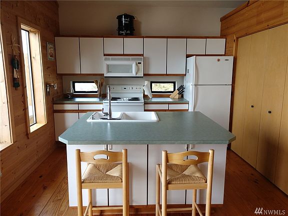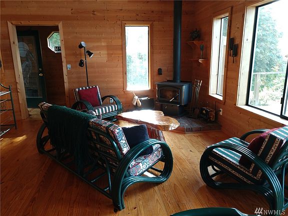 Great Buff Home w/South West view of Sound, Mountains, and Marine Life. This is a 1 1/2 lot w/separate building for office, artist studio& more. Home is open w/ great room that opens to a large entertaining deck. Knotty Pine floors & walls, 2 Large bedrooms & full bath. Office or entertaining room upstairs. Built in sound system & speakers. Easy working Kitchen w/ eating bar. We have a 9 hole golf course, tennis court, 4.5 miles of beautiful beaches to walk on, and a Large Marina & Yacht Club