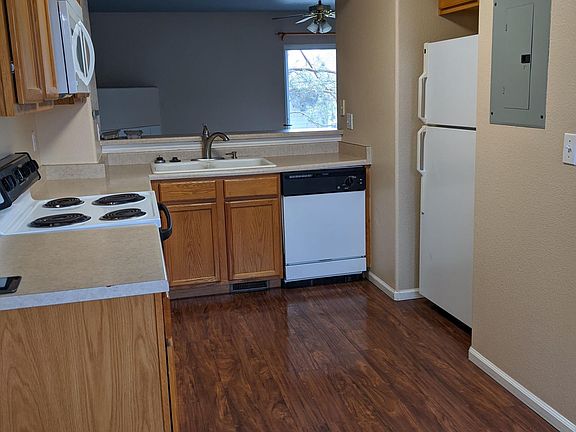 WE ARE ON VACATION TILL FEBRUARY 5th. SHOWINGS WILL RESUME FEB 6th. 2 BR/2 BA end unit condo available right now. Two level with main floor living area and bedrooms upstairs. Both bedrooms are spacious and have attached full baths. Ample closet space everywhere in unit. Main level floors and carpet are less than two years old. Washer and dryer in unit. Detached one-car garage close to unit (with built-in shelving) and additional (unreserved) parking in complex. All kitchen appliances; gas fireplace in living room; recently replaced water heater. Forced air heat and central AC Ceiling fans in living area and one of the bedrooms Rent includes water, trash and snow removal. Security deposit $1500 One pet allowed with a non-refundable cleaning fee of $400