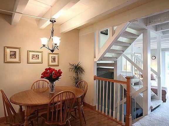 Corner unit with beautiful views of the park and woods. Large kitchen with dining area opens to living room and deck. Bedrooms are on 2nd floor and master bedroom has its own deck. Lower level provides a cozy family room, laundry, full bath and patio. Enjoy the hot summer days lazing by the association's pool. Don't miss out on this wonderful condo! Subject to seller finding suitable other property.
