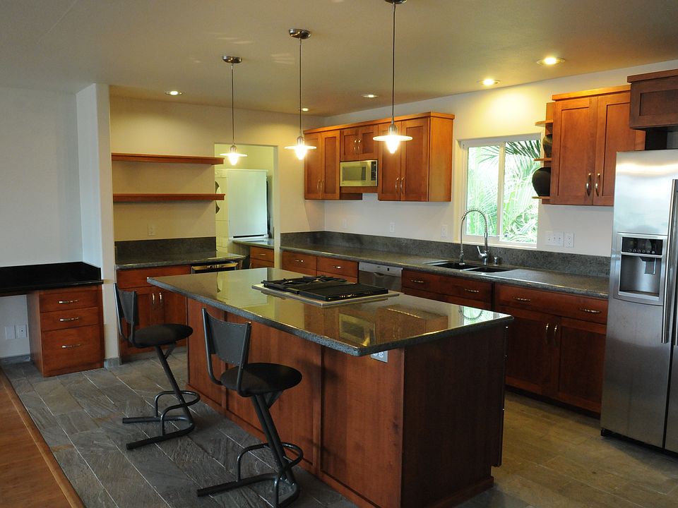 Well built custom home with excellent finishes usually not found in Kaaawa. Bamboo floors in the living room and bedrooms slate in the kitchen and laundry room and basalt in the bathrooms. Open floor plan kitchen with granite countertops and stainless steel appliances. Jen Aire dual fuel downdraft range with convection oven is a joy to cook on. Bosh dishwasher is amazingly quiet. This house is easily converted to 3 bedrooms. Quiet and private were prime factors in design and construction of this home, insulation in the interior walls and well as exterior walls not only keep this house cool, but quiet too. Custom closet in the master bedroom even had a cedar lined drawer. Second bedroom has a built in desk. Double pane Windows add to the ability to block out most noise, although Kaaawa is a very quiet community. Plans available to enclose the lower portion of the house and create an additional dwelling unit and 2 car garage. Some city fees already paid. Leased solar PV system as well as the solar hot water system help keep energy costs down. Elevation certificate complete, flood insurance is minimum allowable.