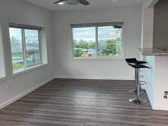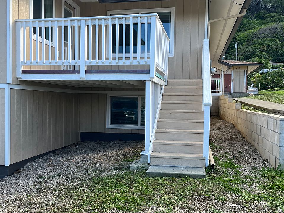 AVAILABLE NOW IDEAL FOR WORK FROM HOME OCEAN VIEW OFFICE /DEN . NEW CONSTRUCTION LARGE OCEAN VIEW / LIVING / KITCHEN, OPEN CONCEPT . WATCH THE WHALES FROM THE FRONT SUN ROOM OPEN CONCEPT, LIVING /KITCHEN AREA STAIRS/DECK ENTRY, WASHER AND DRYER SHARED NEW APPLIANCES REFRIGERATOR W/ ICE MAKE, ELECTRIC STOVE/ MICROWAVE GRANITE COUNTERTOPS, MULTIPLE BASE AND WALL CABINETS TWO PERSON SHOWER ! LARGE BEDROOM WITH 2 CLOSETS, CEILING FAN, EASILY ACCOMMODATES KING SIZE BED PRIVATE ASSIGNED PARKING 65" SAMSUNG SMART TV AVAILABLE NOW SUNRISE AND OCEAN VIEWS DECK FOR GRILLING AN EXCEPTIONAL COUNTRY APARTMENT IN A QUIET RESIDENTIAL BEACHSIDE COMMUNITY. ABSOLUTELY THE NICEST AVAILABLE RENTAL ON THE WINDWARD COAST. COASTAL DRIVE TO TOWN OR H3 TO JBPH NEW APPLIANCES; ICE MAKER REFRIGERATOR, ELECTRIC STOVE TILED BATH, WALK-IN SHOWER, VINYL FLOORING KING SIZED BEDROOM HIS/ HER CLOSETS LARGE LIVING AREA WITH DINING OCEAN / SUN ROOM IDEAL FOR OFFICE OR LOUNGE AREA ON SITE WASHER AND DRYER WEEKLY REFUSE, WATER INCLUDED HIGH-SPEED INTERNET AVAILABLE NO PETS / SMOKING SEEKING : QUIET LONG TERM TENANT