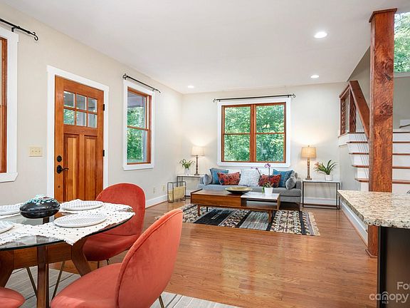 A rare find with this like-new Arts and Crafts home that includes a large apartment on a private lot in popular Montford! Established walkable neighborhood located a mile from downtown Asheville and an easy stroll to neighborhood eateries and parks. Excellent design with a main home and attached accessory apartment. Main unit features one level living and an open, flowing floor plan. Chef’s kitchen boasts granite counters, stainless appliances, pantry, farmhouse sink and a large island with a breakfast bar. Primary suite on-main features a walk-in closet, an ensuite bathroom that includes a granite vanity and a tiled, walk-in shower. Modern cable-rail stairs lead to large bedrooms with vaulted ceilings, walk-in closets and a spacious bathroom. Apartment features an open plan with vaulted ceilings, gourmet kitchen, deck, and a loft bedroom. Perfect for rental income, guests, office or Airbnb/homestay (city rules must be met). Apartment last rented for $1560/month. See brochure for info.