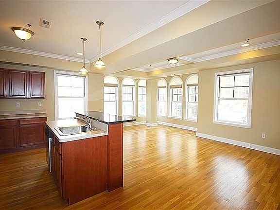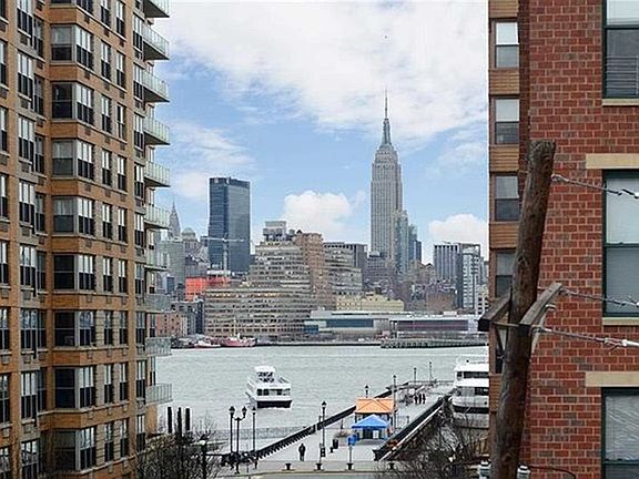 Large upscale corner condo with NYC river view. 2 bedroom, 1 bath in newer elevator building on uptown Hudson St. (1087 sq ft) Kitchen features custom cabinetry, granite breakfast bar & stainless steel appliances. Other amenities include 6 corner windows with treatments, hardwood floors, recessed lighting, laundry in home, cac, gas heat, crown molding and elevator. Close to ferry, NYC bus, shopping, marina and waterfront promenade.Rental parking nearby in Toll lot.