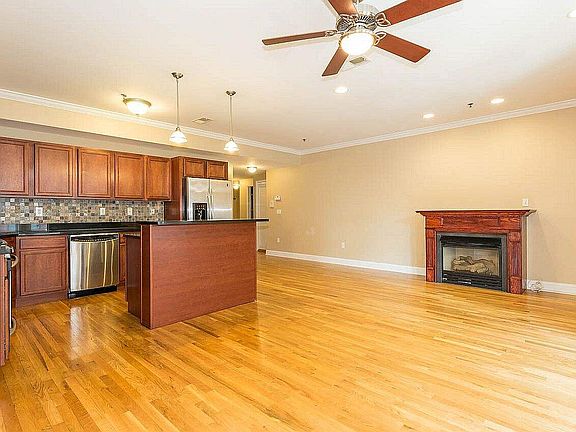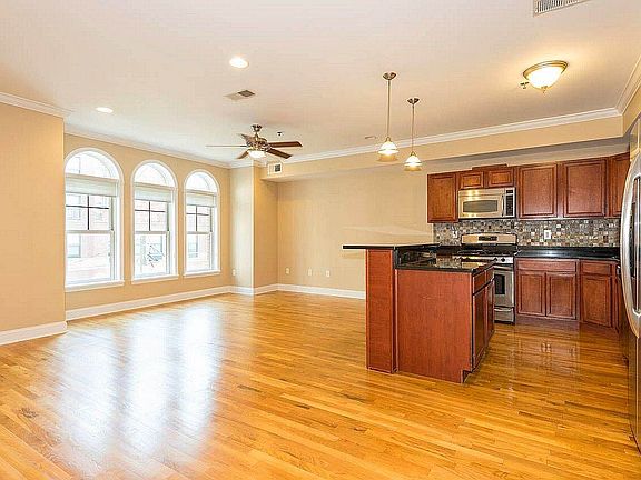 Classic 2 bedroom condo in newer elevator building on desirable uptown Hudson St. Spacious living area features architectural windows & fireplace, Open kitchen with chef's island complimented by GE Profile S.S. appliances & granite counters. Large master bedroom & 2nd bed both w sliding glass doors & Juliet balcony overlooking greenery. Additional amenities include hardwood floors throughout,crown molding,recessed lighting,central ac & laundry in home. One block to ferry, NYC bus, rental parking & nightlife
