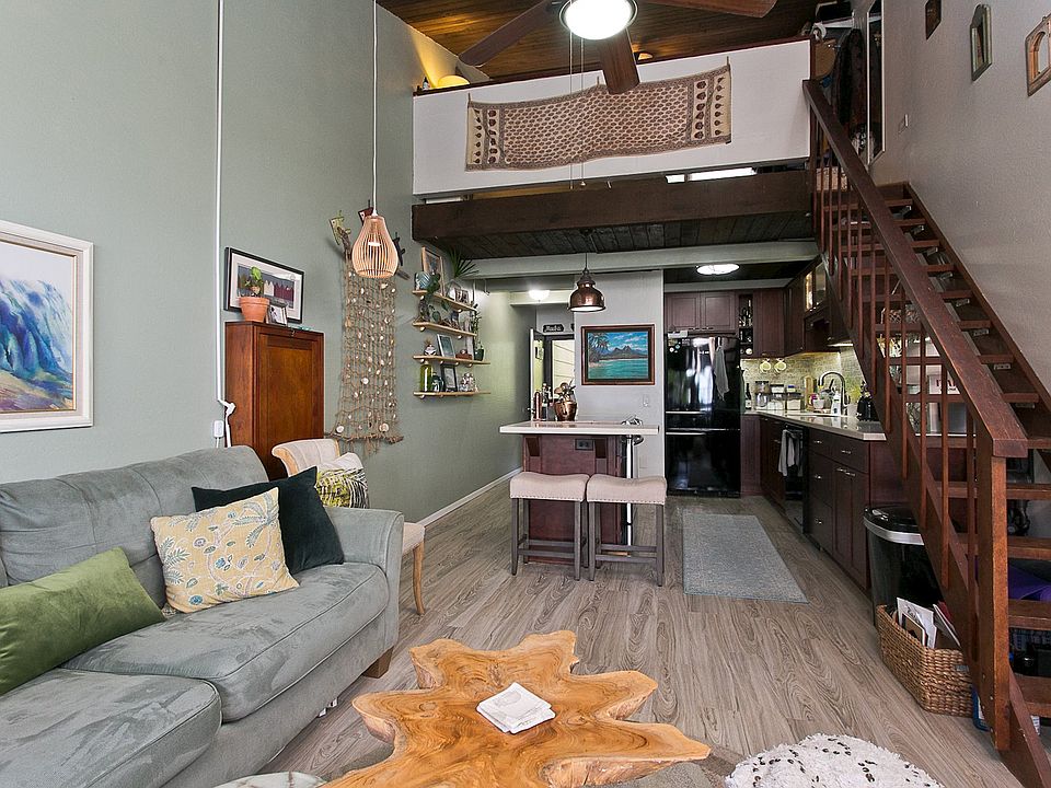 HYPNOTIC OCEAN VIEWS! First time homebuyers or investors will love this gorgeous Makaua Village studio unit with its remodeled, custom kitchen and a lanai just made for pleasant mornings or relaxing evenings staring at the waves. Enjoy your Corian counters, newer appliances, and in-unit washer/dryer (community laundry is also available). Lie in bed in the cozy loft and look directly out the window at beautiful mauka scenery. Take a dip in the pool, throw a party in the pavilion, or sit in the elevated whale-watching area. Tucked in the most private part of the complex, your new home is a lovely bit of paradise!