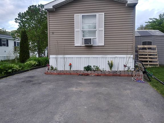 Great price for this light and bright 3 bedroom, 2 full bath mobile in pet friendly Exeter River Coop. Open concept eat-in kitchen, living room. Primary suite at one end of home, 2 bedrooms and 2nd full bath at other end for privacy! The 2019 Stainless refrigerator and gas stove remain, along with a newer washer/dryer set. The nice window blinds are newer and are staying as well. Other improvements done in 2018 include the resin storage shed on pressure treated wood base and new bathroom floor. Nice 12 x 8 deck. Near playground and inground swimming pool. Quick close possible!