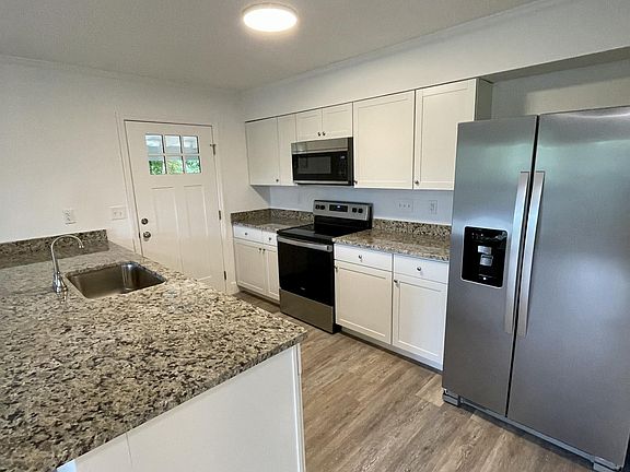 Fully renovated South Asheville home. Conveniently located off Hendersonville Rd near Long Shoals Rd. Quiet, private end of road location. Open floor plan with beautifully updated kitchen with stainless steel appliances, including range, refrigerator, dishwasher, and built-in microwave. Adjacent open dining and living area, lots of natural light. New luxury vinyl wood tile floors throughout. Good size covered front entry porch, kitchen has door to a large, private, covered side deck. Two spacious bedrooms with good closet space, main/hall bathroom with walk-in shower. Primary bedroom with access to side deck, ensuite has tub/shower combo. Ample storage throughout, W/D hook ups, and lots of off-street parking.