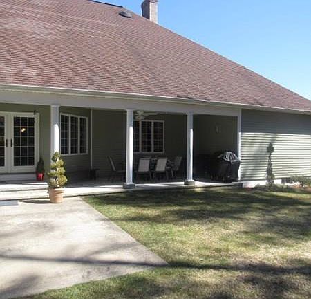 Lovely Acushnet subdivision, Reservoir Estates. Outstanding 2494 sq.ft. Contemporary Ranch 1 level living. Large open floor plan for family entertaining. Large open foyer leading into lovely fireplace living room leading to open dining room & kitchen with granite counters &breakfast area-large glass doors leading to covered patio. Master suite with full bath & walk in closet- located at opposite end of house for privacy. 2 additional large bedrooms, sewing room. Hardwood floors throughout. Large laundry room on main floor. Central a/c. Large 2 car garage with 6 space driveway. Two outside patios. Professionally landscaped grounds for outside enjoyment.