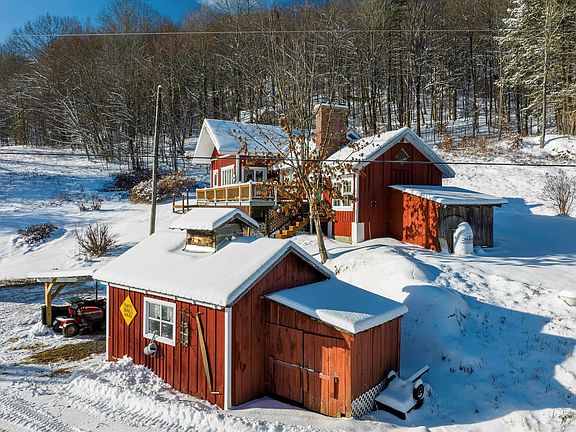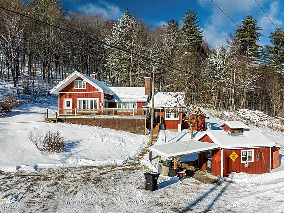 Vacation getaway, or primary home, offering a hillside retreat, with separate quests quarters, complete with a kitchenette, bath and loft, perfect for friends and family, in-home office, or studio. The bright interior offers an open concept kitchen dining, warmed by a wood-fired cook-stove and opens to a living room with a cozy stone fireplace, and large windows to enjoy the views. Additionally, on the 1st floor there is a full bath, bedroom, and two additional bedrooms and a ½ bath on the 2nd floor. A concrete pad off the back serves as a patio but could become the foundation for an addition. Additional features include a large deck, outdoor shower, old sugar house, now serves as a carport and shop space and 2 sheds provide storage space. Located just a few miles from the picturesque village of Grafton, and easy access to skiing at Okemo, Magic, Stratton and Bromley, and nearby access to VAST, Grafton Ponds, Village Market, Grafton Inn and Phelps Barn for dining. Fiber optic internet is a bonus!