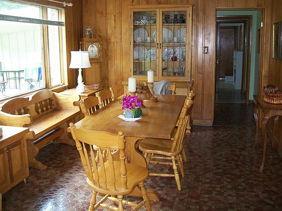 Borders national forest and fishing!Bed and Breakfast potential with this brick home! 7 big bedrooms that could be suites, 4 baths,beautiful oak hardwood floors and trim, ornate ceramic tile in kitchen and baths, some wood panel walls,huge living room with double sided fireplace, office,detached 2 stall garage with storage above on level over an acre lot. Plenty of parking, Beautifully decorated.