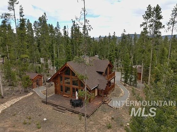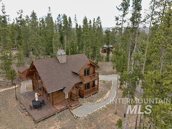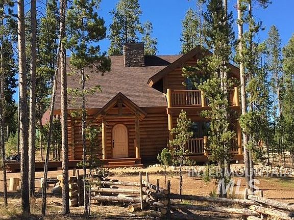 Imagine stepping into a stunning log cabin nestled in the woods, where nature is your closest neighbor. Crafted with rich, warm timber, this retreat exudes rustic charm while boasting elegant upgrades that enhance both comfort and style. Inside, vaulted ceilings and expansive windows invite natural light to dance across the polished hardwood floors. The gourmet kitchen features state-of-the-art appliances, custom cabinetry, and quarts countertops, with classic craftsmanship. A wood burning fireplace serves as the heart of the living space, perfect for cozy evenings in. Step outside onto a spacious deck that overlooks untouched wilderness of the Sawtooth's seamlessly blending indoor and outdoor living. This cabin borders Forest Service land, meaning endless exploration awaits hiking, wildlife watching, and the serenity of nature right at your doorstep. Whether enjoyed as a peaceful escape or a year-round residence, this log cabin offers the best of secluded, scenic living.