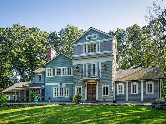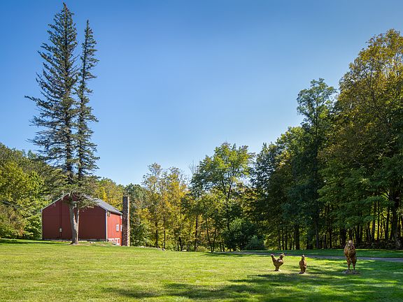 Imaginary Farms - Designed by renowned architect Peter Wooster and home to Tony award winning Broadway director Jack O'Brien, this truly enchanting home is perfectly sited on 20 private acres that display captivating beauty in every season, with a freshwater pond, swimming pool, Japanese garden, and a meadow bordered with flowering crab apple trees. Located in Merryall, CT in the heart of the Litchfield Hills and only minutes to South Kent and New Preston, every aspect of this dream edifice is designed to enchant, amuse, and nourish.Entering the front door, the foyer features an ancient Chinese pavement stone floor and opens to the impressive timber-framed great room with floor-to-ceiling built-in bookcases and massive fireplace flanked by walls of glass. The open concept kitchen & dining room features a Scandinavian fireplace, oversized island, and Viking appliances and opens to a lovely screened porch and spacious terrace at the rear of the house. Rounding out the first floor and bathed in natural light, a well-proportioned bedroom comes with a private terrace and ensuite glass tiled bathroom with soaking tub and shower. The custom staircase showcases incredible woodworking and leads to the second floor master bedroom suite complete with a fireplace, walk-in closet with laundry, and large private balcony. A David Rockwell "original" master bed rotates 180 degrees to take advantage of the changing seasons. The ensuite master bathroom features Waterworks fixtures, a whirlpool tub, and stunning shower that opens to a private balcony. Ascending another level, one finds a witty aerie perfect for entertaining and relaxing. A custom mechanized glass chandelier, hovering over the foyer and designed by David Rockwell, brings hors d'oeuvres up to this sitting area easily with the flick-of-a-switch. In addition, a whimsical and charming bedroom is located over the attached two-car garage. The Antique barn has been partially finished into a charming two-floor apartment with an open kitchen/living room with fireplace and a bedroom opening on to the classic barn space below.Only 90 minutes to NYC, nothing about this property is either predictable or less than magical.