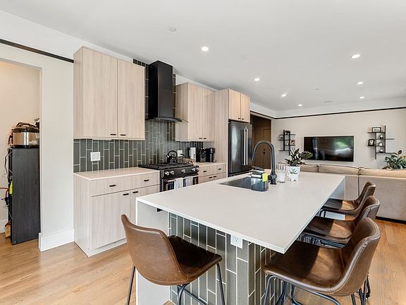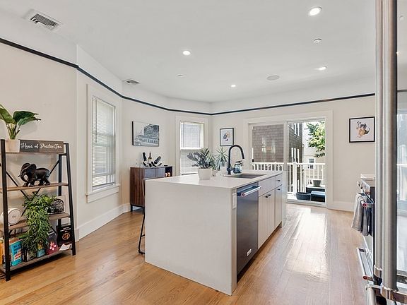 This beautiful open floor plan condo was gut renovated in 2017 and designed by Best of Boston Interior Planner, Louis Ashman. The entryway features custom mill-work paneling to give a visual separation between the spaces. The open concept features a large living room and kitchen which open to a rear deck. The kitchen features an island with a quartz waterfall countertops, and a stunning glass backsplash which is mirrored on the back of the island. Appliances are KitchenAid black stainless steel and include a gas range, dishwasher and French door refrigerator. The primary bedroom has an en-suite bathroom with standup shower featuring beautiful herringbone tile plus heated floors, plus a walk-in closet. In-unit washer/dryer, in ceiling speakers throughout and tankless hot water. Located in Dorchester’s Savin Hill neighborhood, this condo is a short 1/4 mile from Savin Hill Red Line T Station. Easily accessible from 93 North and South.