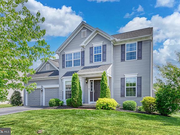 Welcome to this stunning Berks Homes built 4 BR home in the highly desired Pathfinder Meadows neighborhood. As you enter this immaculately kept home you are welcomed by hardwood floors and 9 foot ceilings with beautiful finishes throughout the home such as upgraded high baseboards, trim and kitchen cabinets. There is an abundance of natural light throughout the first floor. Custom Hunter Douglas window treatments throughout the home are lovely and many are energy rated. A two story bump out was added to the kitchen and owner’s suite that truly opens the space. The first floor has everything you need for entertaining with a large eat in kitchen, formal dining room, a sitting room and family room with a gas fireplace to cozy up in cooler months and recessed lighting throughout. For the warmer days enjoy the new in 2020 composite deck with timed lighting and the fenced in backyard. First floor has laundry and a half bathroom as well. Upstairs you will find 4 bedrooms including an owners' suite with a private full bathroom and walk in closet. The three other bedrooms are all nicely sized and have ample closet space. The second floor also has a full hallway bathroom. The entire house has hardwired smoke and carbon monoxide detectors. But we are not done. The basement has a large finished living area with custom staircase and built-ins, stain proof carpet, recessed lighting and still has tons of storage. There is a whole house water softener and water filtration system. This home is ready for you to move right in. Book your showing now, you don’t want to miss it. Showings start 5/19, Professional photos will be loaded 5/17.