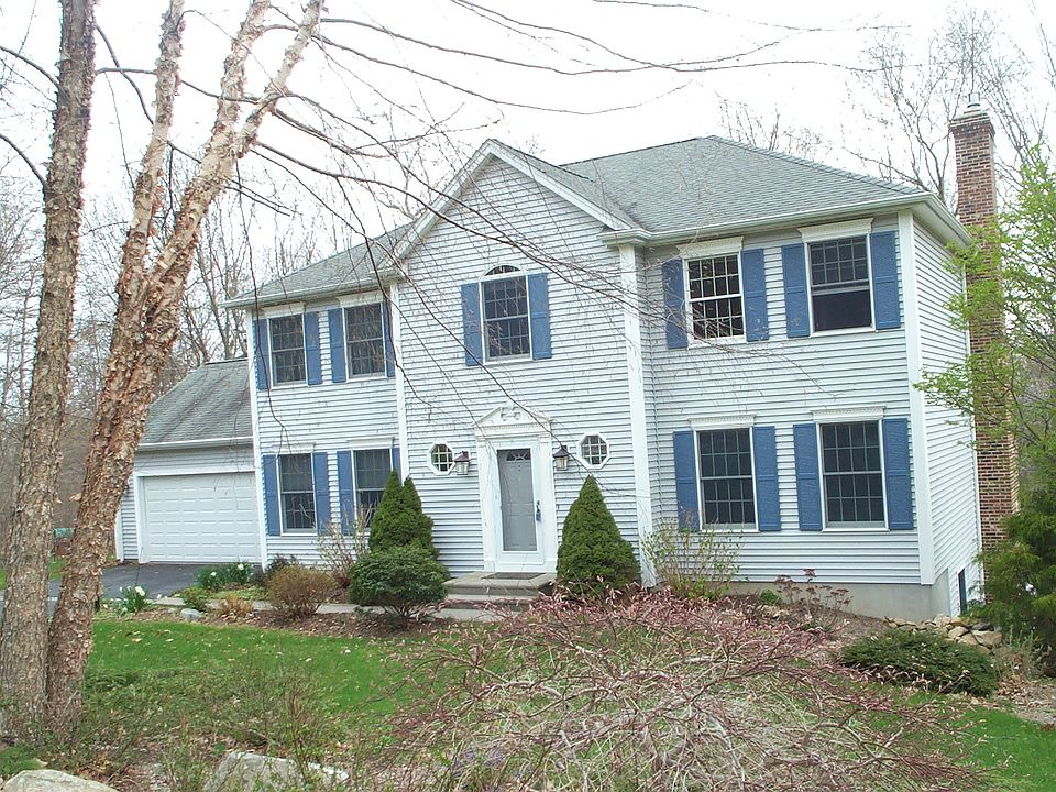 Available January, 2014. Pets flexible, non smokers, credit check, security deposit & one year lease minimum. Spacious 4 BR, 2.5 bath Colonial set high on Bittersweet Dr. Eat-in KIT with heated tile floor & stainless steel appliances open to FR w/ fireplace. Formal LR & DR w/ hardwood floors, master bedroom with walk-in closet, spacious bedrooms and HUGE walkout basement. Oil heat, 2 car garage & quiet neighborhood. Call (860) 464 8430 for additional information...www.annmcbride.com.