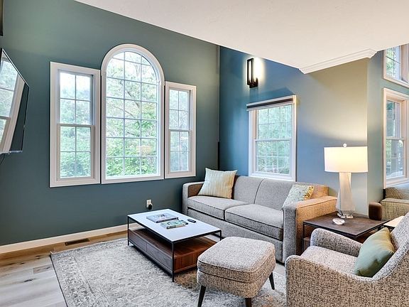 If you love Windchime, get ready to really love this unit! 51 Blue Spruce Way has been recently renovated with many lovely updates, a real modern vibe and it's ready to welcome YOU! The amazing main living area offers lots of space to relax or entertain friends and family. The balcony off it is a sweet spot for sitting with morning coffee or evening cocktails. TV viewing and dining areas are all part of the main floor living. Freshly renovated with new wood flooring, too. The kitchen is just updated and has a charming breakfast spot as well as sliders to the enclosed porch. The primary bedroom has new carpet and a renovated bath you'll love with tiled shower and flooring. Upstairs offers more living space in a wonderful open plan loft with cathedral ceiling, and overlooks to the lower floor. The second bedroom has a large, renovated bath and a closet. The lower level has a sitting space with an office area, a wet bar, as well as a slider to the patio. Come see if this is for you!