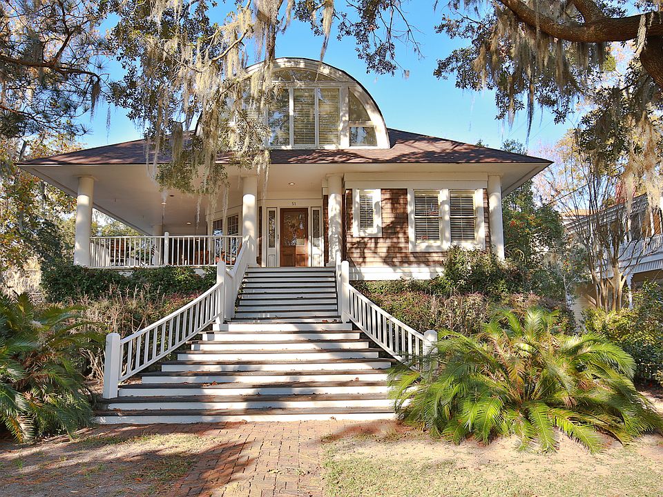 Enjoy the beautiful sunset views of Skidaway River! This elegant 5 bed 3 ½ bath home is located on Bluff Drive’s Isle of Hope, one of Savannah’s most notable historic streets. This astonishing 3- story home is over 3600 sq. ft. Truly an exceptional interior with open living space. Bright grand room includes dining room, living area with fireplace, and sunroom. Home features custom built-in’s, large windows, remarkable master suite, tons of storage space, extensive wrap porch, cat walk leading to a outdoors man cave, and more! Home is filled with hidden treasures, including the front door, which comes from a 1800's English cargo ship, as well as the master suite windows. Master suite includes a beautiful sunroom looking out to the water, as well as a newly renovated bathroom and large walk-in closets. Family room comes with a built in, sliding bookshelf exposing an attached apartment. This mother-in-law apartment includes a living room, kitchen, full bath, and two bedrooms. Could potentially be rented out! This beautiful home flows immaculately from indoors to outdoors. Perfect home for entertaining all while feeling included in Isle of Hope Marina events!