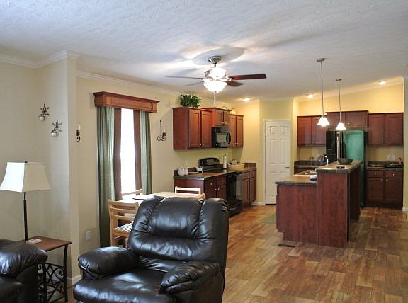 This home has many great features & looks (& even smells!) brand new! It's a 2010 doublewide w/permanent concrete foundation w/stucco finish on concrete so it looks great. Inside's an open plan, vaulted ceilings, split bedrms, master bedrm w/adjoining 13x14 area that includes large master bath w/garden tub & walk-in wood-lined closet. It's an all electric home, but there's a wood-burning stone fireplace to supplement heat in the winter. The family's cook will enjoy the great kitchen w/island & pantry open to both the LR & DR. Home sits on 1.3 private, partially wooded acres w/2 storage bldgs.