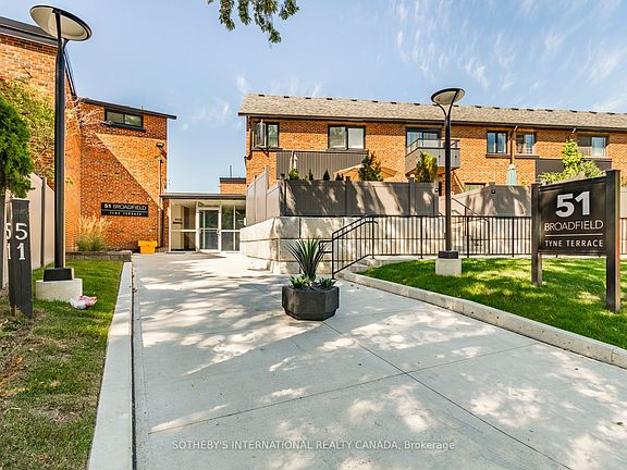 Welcome 51 Broadfield Dr, a bright and spacious 3 bed & 3 bath townhome tucked away on a quiet street in the highly sought after Markland Wood community. Featuring 2,000 sf of living space this desirable floor plan offers a large living rm, separate dining rm, family-size kitchen & walk-out to a private patio & garden perfect for outdoor living & summer Bbqs. Three generous bedrooms include a primary bed with walk-in closet & private balcony. The finished basement adds a large rec room and a private office, offering flexible space for work or play. Across from top-rated schools this townhome is part of a recently revitalized complex with recent major upgrades, new roof, landscaping, walkways, fencing, siding, insulation, eaves, garage, lighting, security & intercom. Perfectly situated steps to shopping, dining, public transit, TTC & Go Train, several parks, creek & trails, Markland Wood Golf club with quick access to Pearson airport, 427, 401 & QEW.