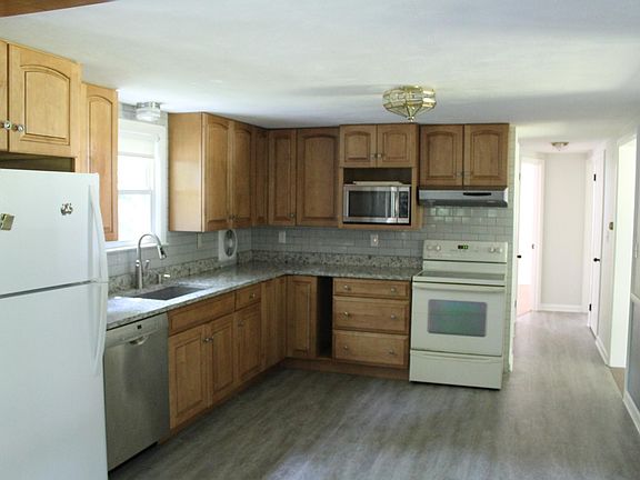 This freshly renovated cape sits on a quiet dead end street in Bolton, CT. On 3/4 of an acre, surrounded by woods with a large deck, you'll have both lots of privacy and beautiful sunset views. Inside, you will find new paint and flooring, a kitchen with granite counters, stainless steel sink & dishwasher, two remodeled bathrooms, a new mini split for heating and cooling, and basement laundry. You will also find a living room by the front door with a fireplace and another larger room with high ceilings that leads to the deck. Two first-floor bedrooms include hardwood floors with new closet interiors. The home has two additional bedrooms upstairs, another bathroom, and loads of closet space. Renter is responsible for electric and oil. No smoking.