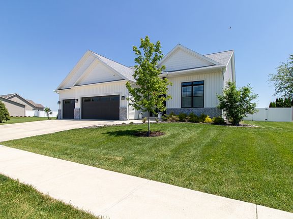 Beautiful 2021 build in Brookridge Estates. Better than new construction! Lots of upgrades after it was purchased! Main floor primary suite, two story living room, office space, and laundry. 3 bedrooms upstairs with a full bathroom. Finished basement includes large family room, pool table space, full wet bar/kitchenette with ample cabinets, the 5th bedroom, 3rd full bath, and ample storage space! Notable upgrades while being built/after purchasing; Custom shutter window treatments, shiplap and custom bookcases in living room, half bath shiplap, extra large island with backside cabinets for storage, custom pantry, laundry room custom desk/organizer cabinets, 6' white vinyl privacy fence, added concrete for extra large patio space, custom built Blackstone/griddle station, natural gas hookup for grilling station, prewired for a pool, fully finished basement including the kitchenette and full bathroom, hot and cold water hookups in the garage, heated garage, and the storage shelves in the basement storage areas. Don't miss your chance to call this stunning place 'home'! No backyard neighbors!