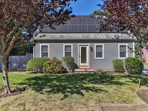 Deep Water Access! This private waterfront community is a boaters paradise. Located on the Mashpee River, Pirates Cove boasts three association beaches which allow summer storage and direct water access for canoes/kayaks 12ft and under. The town boat ramp is just outside the neighborhood, and a full-service marina is .2 miles away. This bright airy home abuts the Mashpee River Woodlands and offers a view of the river. It offers a remarkable value with owned solar panels which feed energy back to the grid and produce enough energy for free electric service including mini splits to provide whole house heat in winter and air conditioning on warm summer days. The solar panels earn quarterly SREC payments that add up to $1200 yearly. Enjoy views from the newer kitchen or three season room for relaxing while bird watching. Solid wood floors throughout, a gas stove fireplace and a 14K natural gas generator. The generator with automatic transfer, a 200-amp electrical surge upgrade and a whole house surge protector, installed 2023. The well-crafted bulkhead entrance has a greenhouse door. There's an EV charging station and an outdoor shower. A shed with electric and RV hook up.