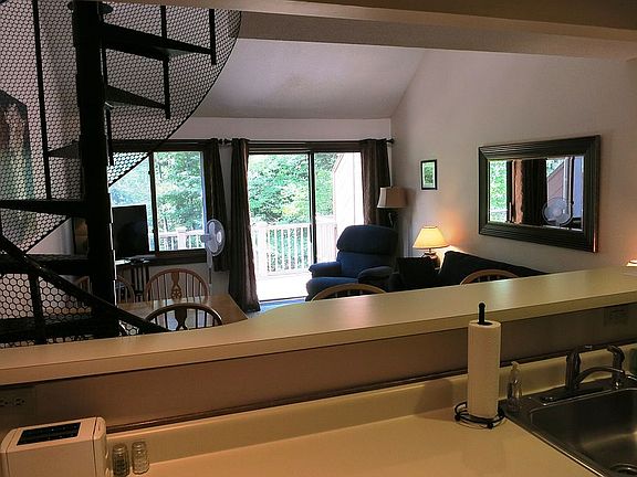 Located in the heart of Vermont's Northeast Kingdom, Burkeside 116 is perfectly situated beside the lower lodge and summer alpine bike park at Burke Mountain Ski Resort, and is less than a mile from the Nordic Center and the world-famous Kingdom Trails mountain biking network. Burkeside 116 is steps away from the Sherburne Base Lodge, home of the Tamarack Grill restaurant and bar, as well the Sherburne high-speed quad lift. Park your car upon arrival and leave it till it's time to go, while you enjoy all the mountain has to offer. In spring, summer, and fall, hop on your bike and have direct access to the Kingdom Trails network and the new Burke Mountain Bike Park. Burkeside owners enjoy free access to nearby Burke Mountain Hotel amenities (pool, hot tub, fitness center). This condo features three levels (finished basement, main level, loft-level master bed/bath) and comfortably sleeps nine. It offers a locking storage area on the covered porch for bikes or skis, and a private deck. The unit was upgraded five years, including new furnishings and new slider doors on both middle and walkout basement levels. A complete roof rebuild project was completed three years ago--8" spray foam (R50) and standing seam steel roof--with the special assessment ($22.5k) already paid for. Listed HOA dues include water/sewer and road management fees in addition to association dues (billed quarterly).