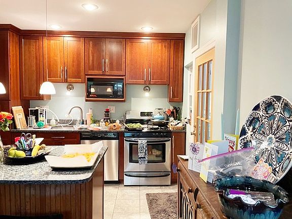This sun-filled home painted with soft colors is on a dead end street and features an amazing outdoor covered room. The first floor is open concept. The living room is partially separated from the grand kitchen and eating space. The completely redone kitchen has recessed light, amble rich wood cabinets that go to the ceiling, stainless full-sized appliances and an island with A breakfast bar. Upstairs are the traditional small, medium and large bedrooms all with ceiling fans and a thoroughlymodern family bath. The basement level has a room that completely closes off and can be used in a variety of ways. There's a second full bath and separatelaundry room. The deck off the kitchen is spacious and partially under a roof with a ceiling fan. There's off street parking. No more than 2 unrelated parties. The landlord is not considering co-signers at this time. AvailableJuly 15.