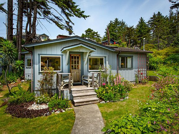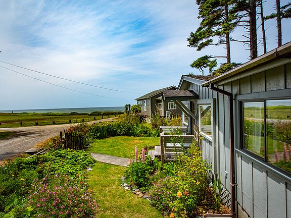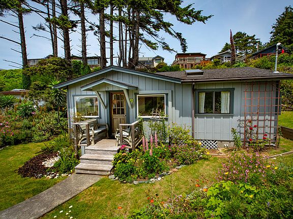 Prefer the beach or the forest? Why not enjoy both plus a natural setting, lagoons, sunsets and all the activities that come with nature's best. Delightful 2 bedroom, 1 bath cabin with ocean views. Featuring vaulted wood ceilings, wood stove with brick & tile hearth, remodeled kitchen with Cherry cabinets & Corian counters, skylight, spacious bathroom with tile counter & floors, new heat pump system and an oversized laundry room with extra storage. Redwood siding, dual pane windows, storage shed and landscaped yard with an abundance of beautiful flowers. Don't miss your chance to live just a few steps from the ocean! Owner may carry with approved credit and terms.