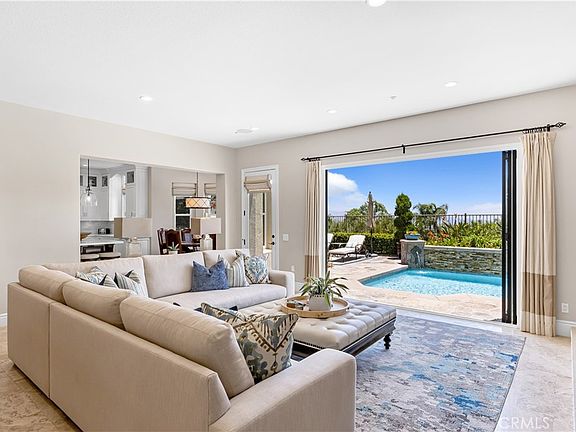SPECTACULAR HOME SITUATED ON A LARGE ELEVATED CORNER LOT, OFFERING UNPARALLELED PRIVACY AND STUNNING VIEWS IN TALEGA'S PRESTIGIOUS MONTELLANO TRACT. The 5,099 square foot home features five bedrooms (one en-suite bedroom is located downstairs), five and a half baths and a downstairs private office. THE INTERIOR DESIGN OFFERS VERSATILITY, EFFORTLESSLY TRANSITIONING BETWEEN CONTEMPORARY AND TRADITIONAL AESTHETICS TO SUIT YOUR PERSONAL STYLE AND DECOR. The current owner has added approximately 400 Sq. Ft. of living space, presenting a highly desired floor plan with a formal living room, formal dining room with gorgeous wine wall, gaming room, and an open concept kitchen that flows into the family room. Featuring tons of natural light (owners added Milgard picture windows and French doors in multiple areas), all of the downstairs rooms are perfect for relaxation & entertaining. Step into culinary luxury with this impeccably designed kitchen. Custom cabinetry provides ample storage while showcasing exquisite craftsmanship. The heart of this kitchen is the high-end Thermador range and refrigerator, ensuring top-tier performance for your cooking needs. A Miele built-in espresso machine and convection oven elevate your culinary experience. The luxurious quartz counter-tops offer spacious and stylish work spaces for all of your culinary creations. Additional downstairs features include a mud room (upon entry from the garage), surround sound, 3 fireplaces (2 double sided), a courtyard, and the butler’s pantry with a large Sub-Zero wine refrigerator. The upstairs boasts a stunning primary suite that spans into the spa-like primary bathroom with dual vanities, custom cabinetry, quartz counter-tops, a soaking tub and an oversized shower all with Brizo fixtures. The second-story also boasts a spacious loft, three en-suite bedrooms and two balconies. STEP THROUGH THE MILLWORKS ACCORDION DOORS INTO THE "RESORT STYLE" BACKYARD, WHICH OFFERS A STUNNING POOL & SPA, FIREPLACE, MULTIPLE RELAXATION AREAS, AND A CABANA COMPLETE WITH A BBQ, KEGERATOR, SINK, TV AND REFRIGERATOR. A BEAUTIFULLY LANDSCAPED SIDE YARD LOCATED DIRECTLY OFF THE DINING ROOM IS A WONDERFUL COMPLIMENT TO THIS AMAZING PROPERTY. THE HOME ALSO HAS OWNED SOLAR & THERMAL POOL PANELS. DON'T MISS THE OPPORTUNITY TO MAKE THIS AMAZING HOME YOURS!!! Talega amenities include pools, parks, sport courts, biking and hiking trails.