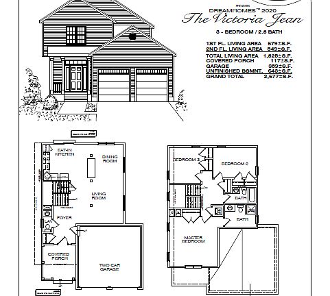 The Victoria Jean features a covered front porch to your front foyer, which has a a coat closet,half bath and door to your 2-car garage. The foyer leads to your main living area which is open front to back with plenty of windows and light. The eat-in kitchen has a slider to optional rear deck or patio. Upstairs you have 3 bedrooms, a good sized master with a full bath, a laundry closet, 2 more bedrooms and a hall bath. This home has a full basement for storage or future finished space. Includes granite countertops, Central A/C, and Stainless Steel appliances.