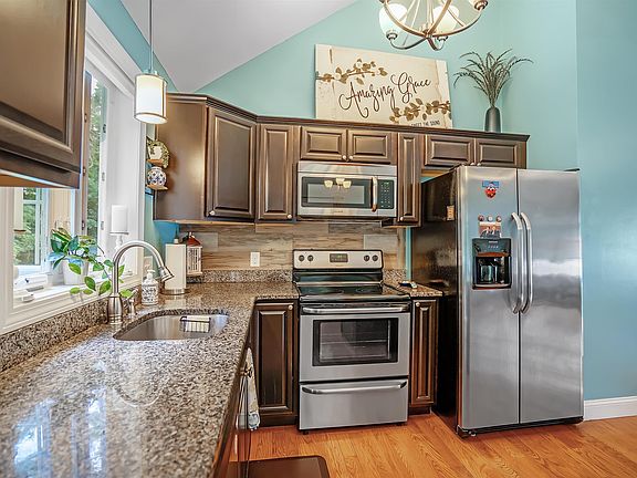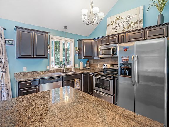 Welcome to this exquisite raised ranch home in the heart of Manchester, a true gem built in 2016 that boasts the allure of new construction. Meticulously maintained, this residence exudes a sense of pristine elegance from the moment you arrive. Nestled on a tranquil dead-end street, this property offers the rare luxury of solitude, with just under an acre of land to call your own. What sets this home apart is that it stands alone on its side of the street. One of the standout features of this residence is the lush, perfectly-manicured lawn, kept vibrant and healthy with the aid of an advanced irrigation system. Inside, the living room and kitchen greet you with soaring vaulted ceilings, creating an open and airy atmosphere. The gleaming hardwood floors seamlessly flow throughout, complementing the modern stainless steel appliances and elegant granite countertops in the kitchen. This home boasts three well-appointed bedrooms and two immaculate baths, providing comfort and space. The partially finished basement offers additional flexibility for a recreation room, home office, or gym, tailored to suit your needs. The garage is a hobbyist's dream, featuring a built-in workbench and a convenient side door for easy access. A testament to the thoughtful care put into this property, a new front walkway welcomes you with a touch of contemporary style. In every corner of this home, from its manicured grounds to its carefully curated interiors, the pride of ownership is unmistakable.
