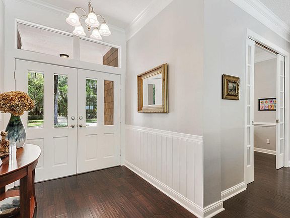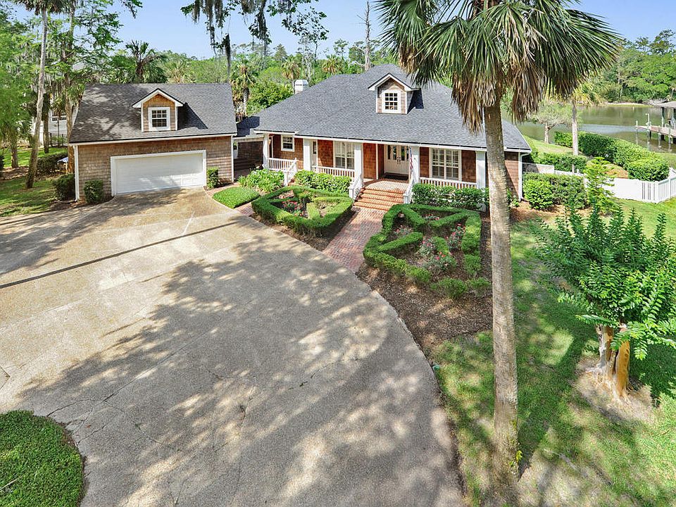 Lovely home on rare double lot offering 150 feet on the Intracoastal Waterway and 415 feet deep on private and serene Cat Road. Relax and enjoy the sweeping views of the water from almost every room. Amazing outdoor space with pool, extensive decking, private dock and covered boathouse with 10000 lb lift. Home boasts four spacious bedrooms plus office/den. Large Master Suite includes a sitting area or office and a master bath with jetted tub and Carrara marble. Fourth bedroom/guest suite above the garage with kitchenette and private entrance is an oasis for your guests. Ten foot ceilings with extensive crown molding create an airy open feel.This oversized lot offers plenty of room to enlarge the current residence to an estate size home. ICW living at its best!!! New roof in 2014, New 10000 lb boathouse lift in 2015, 2 New HVAC systems and all new ducting 2015, New Trex wraparound deck 2015, 2 remodeled baths 2015, New laundry and Master Bedroom built ins 2015, New Subzero Refrigerator 2015, New water softener 2015, New irrigation pump 2016, New gutters 2016, New septic tank and pump 2017.