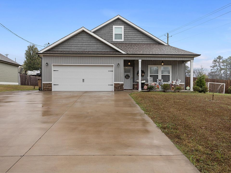 One level show stopper on a quiet street minutes from Downtown Ringgold. Welcome to 51 Catoosa Station Rd. This charming home features high cathedral ceilings, wide open floor plan, beautiful hard wood floors, electric fireplace, granite countertops, gorgeous light fixtures, barn door and much more. You'll love the separate bedroom layout, large master suite with lots of cabinets and tiled shower in the bathroom. Finally the huge fully fenced in yard is the perfect place to play and entertain. Don't miss this amazing opportunity.