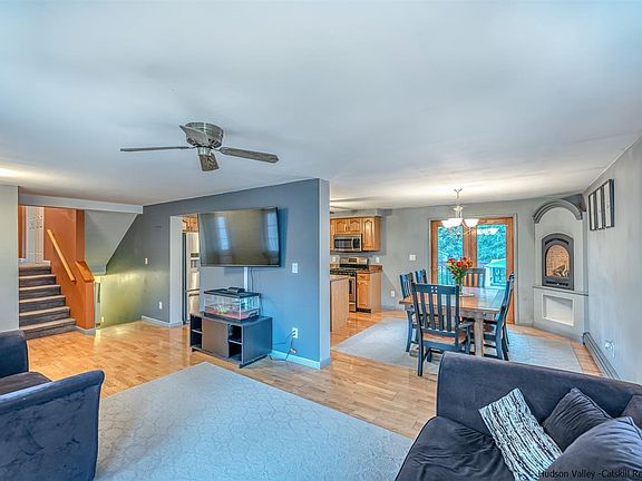 If a convenient location is important to you, then this home will more than satisfy! Located within the village of Rosendale, you can easily saunter into town for a meal, amble to the library for a good book, stroll to the supermarket or walk to the Greyhound bus stop for a quick ride to NYC. Aside from the 3 bedrooms on the upper floor of this updated, well cared for and freshly painted split level, there are 2 more rooms below that can serve as additional bedrooms or as HOME OFFICES! The principal bedroom is en suite, with sliding glass doors out to a deck and a nicely sized walk in closet. The kitchen has been updated with SS appliances and granite countertops. The lower level den and the dining room each have a propane fireplace to ward off the fall chill. This home could easily be a mother daughter. Move in ready! Easy to show!