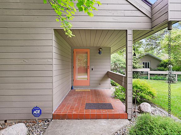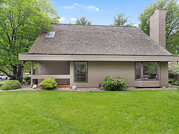 Ahead of its time in style and feel with clean white walls and sophisticated architectural details, this home is poised with potential! This property is an artists' dream! The sunken family room provides a mid-century modern feel with its angled, wood planked ceiling, custom built-in shelving, architectural-pleasing wood burning fireplace, and interesting lines throughout. Positioned on a corner lot in the desirable Lake Park subdivision, this home features beautiful, mature landscape and well-maintained cedar siding. The distinguished dining area offers sliding glass door access to the backyard, complete with a spacious deck and brick paver patio to soak up the peaceful views of the backyard landscape. The front of the home features a living room that could be converted to a separate dining room to accommodate an expansion of the kitchen. The 2nd floor provides a loft feel with an open-style master suite that overlooks the living room below with a private full bath and two additional bedrooms. Finally, the oversized 2-car garage and full unfinished basement provides an abundance of storage. Priced to sell, this home will not last long! View this one-of-a-kind home today!