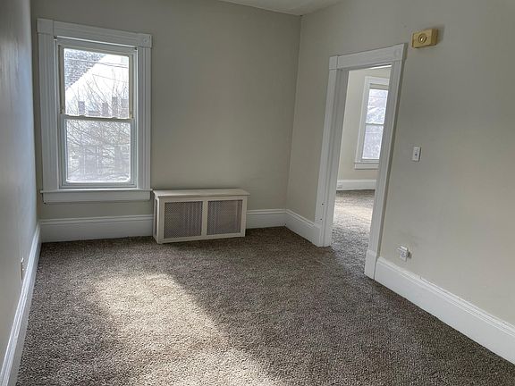 This is a bright and spacious 2nd floor 1 Bedroom unit. Freshly updated, the apartment has been painted, electrical and lighting updated, new carpeting throughout. The apartment is located on a quiet residential street with a mix of single family homes and multifamily units. It is close to downtown and is walk-able to restaurants, shops, cinema center. There is a private second floor porch with great views. Heat and electric included in rent. Off street parking. Lawn care, snow removal and trash pick up included. This is a no smoking building/ property