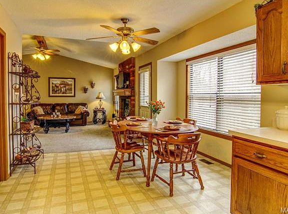 Clean, Clean, Clean...Yep it shows like a million. Over 1300 square foot includes great room with vault and wood burning fireplace. Main floor laundry and huge kitchen with tons of cabinets and large breakfast room with bay window. Large master bedroom and master bath with lots of drawers in the bathroom cabinet and walk in closet. The lower level is finished(approx. 700 sq ft) with large rec room, wood burning stove, 4th bedroom, third bathroom and a walk out to a huge patio, the entire length of the house. Two tiered deck, premium lot overlooks Ft. Zumwalt Park. Backs to woods and view of lots of wildlife, includes fishing lake and playground, and celebration of lights. Better hurry!